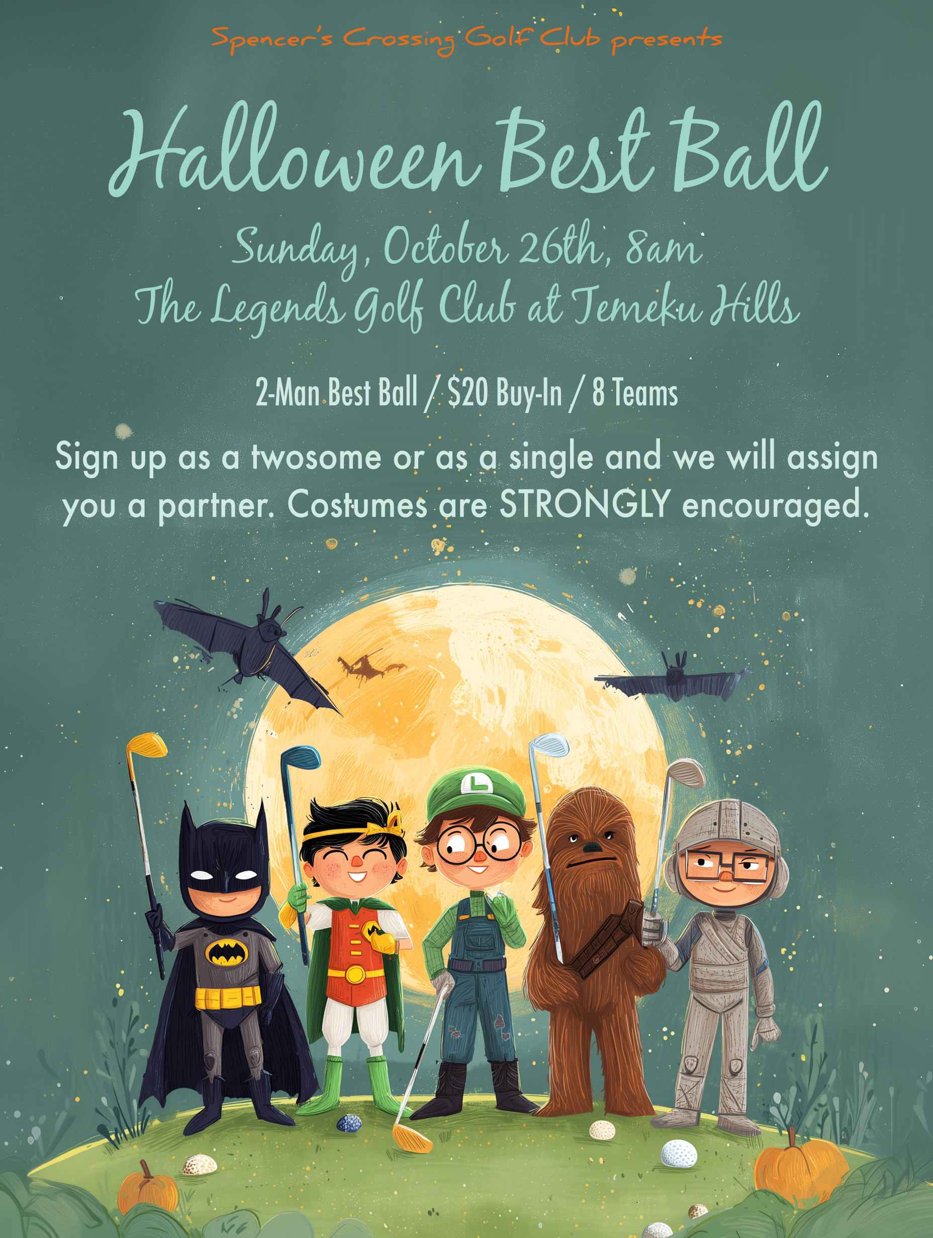 October 2025 Halloween Best Ball Course The Legends Golf Club at Temeku Hills Format 2-Man Best Ball Winner TBD Sign up is currently OPEN! Sign up using this form. |